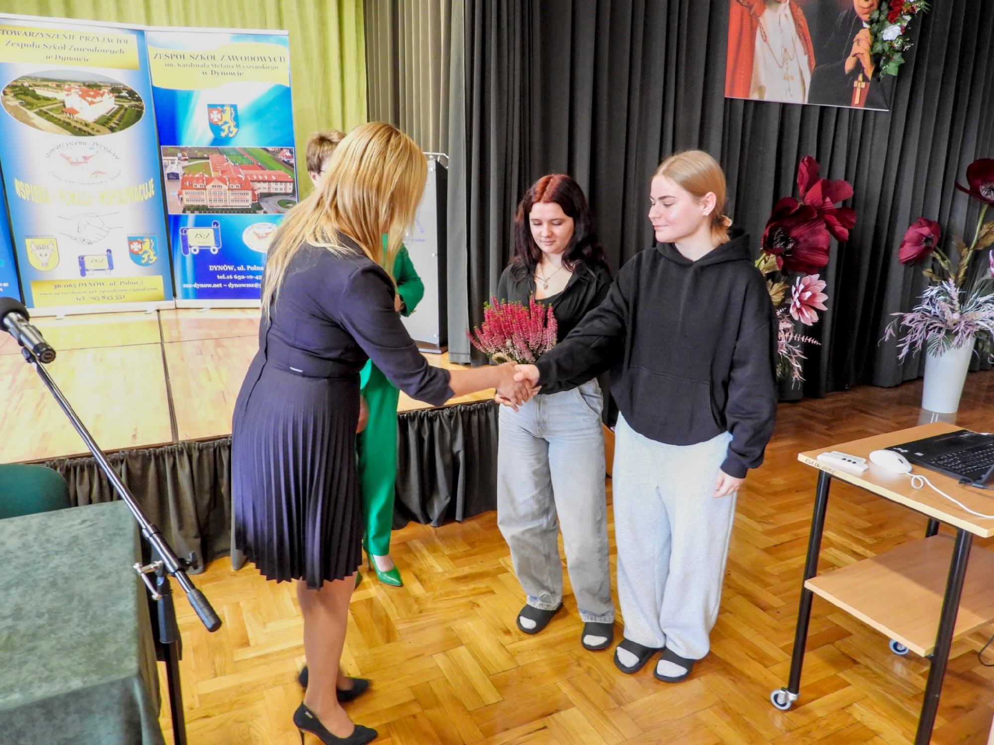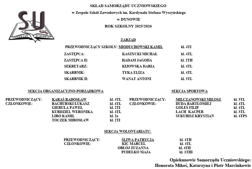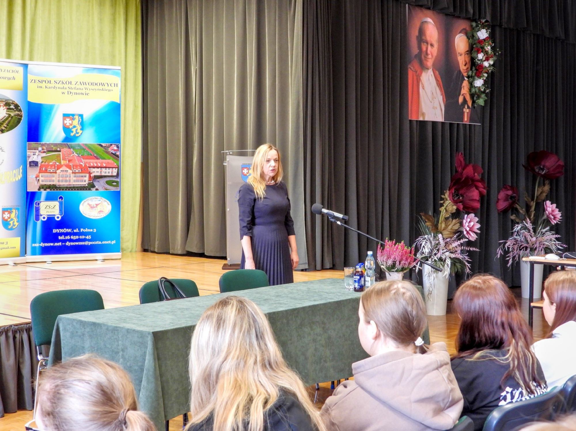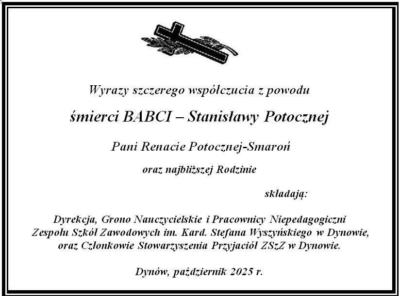 10 października 2025 r. młodzież Zespołu Szkół Zawodowych im. Kardynała Stefana Wyszyńskiego w Dynowie, przygotowanym pod opieką Pani Agnieszki Kędzierskiej i Pana Ryszarda Dymczaka programem artystycznym powitała: Panią Ewę Hubkę–Saleh Przewodniczącą Rady Rodziców, wszystkich nauczycieli, pracowników niepedagogicznych na uroczystej akademii z okazji Dnia Edukacji Narodowej, także z udziałem pocztu sztandarowego (pod opieką Pani Izabeli Jach, Pani Karoliny Prokop i Pani Renaty Potocznej–Smaroń). Pani Dyrektor Halina Cygan przekazując życzenia z okazji Dnia Edukacji Narodowej, w swoim wystąpieniu powiedziała, m.in. „... wyrażam słowa uznania dla całego Grona Pedagogicznego, wszystkich Pracowników Szkoły. Życzę wszystkim nauczycielom aby trudowi wkładanemu w edukację towarzyszyły zaufanie i szacunek uczniów oraz satysfakcja z dobrze wykonywanej pracy. Niech praca z młodzieżą będzie przyjemnością, a sukcesy uczniów będą nagrodą za codzienny trud, serce. Byłym Nauczycielom i Pracownikom Szkoły, chciałam także podziękować za wieloletni trud włożony w wychowanie młodego pokolenia rozwój Zespołu Szkół Zawodowych im. Kardynała Stefana Wyszyńskiego w Dynowie….” /.../ czytaj więcej ..>>pdf galeria zdjęć ..>>