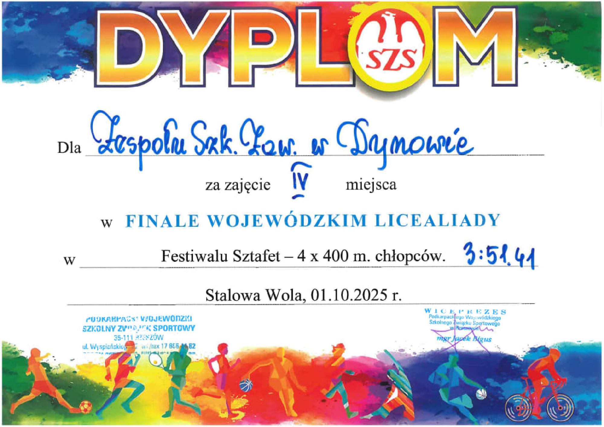 1 października 2025 r. Finał Wojewódzki w ramach Licealiady - Festiwal Sztafet w Stalowej Woli.