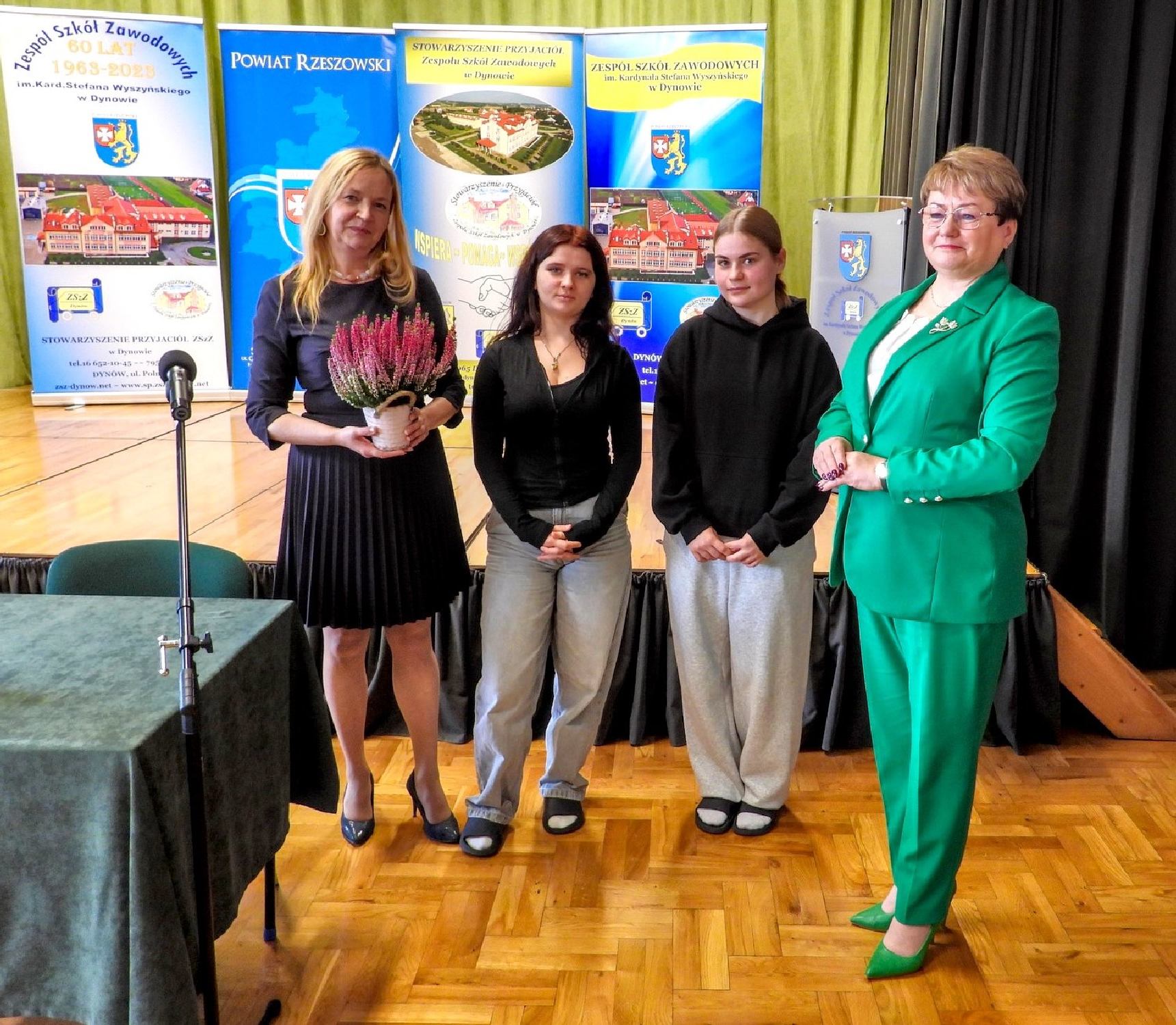 się uroczystość Jubileuszu 80-lecia Liceum Pani Dyrektor Halina Cygan w imieniu Zespołu Szkół Zawodowych im. Kardynała Stefana Wyszyńskiego w Dynowie, a także w imieniu pozostałych dyrektorów szkół i placówek oświatowych prowadzonych przez Powiat Rzeszowski, wspólnie z Panią Elżbietą Klaczak–Łach - dyrektorem LO w Dynowie i Panem Januszem Jakubkiem – dyrektorem ZSTW w Trzcianie, przekazali na ręce Pani Dyrektor - Doroty Tarańskiej-Klęsk, list gratulacyjny, okolicznościowy prezent i kwiaty. W trakcie uroczystości odbył się przepiękny montaż słowno - muzyczny w wykonaniu uczniów, absolwentów szkoły, nauczycieli i zaproszonych gości. Gratulujemy pięknego jubileuszu i dziękujemy za zaproszenie.