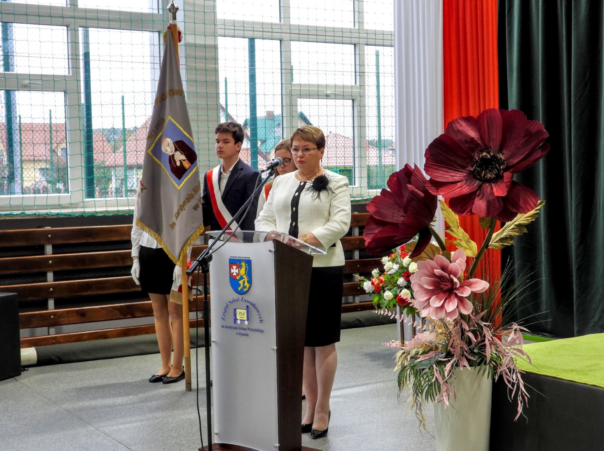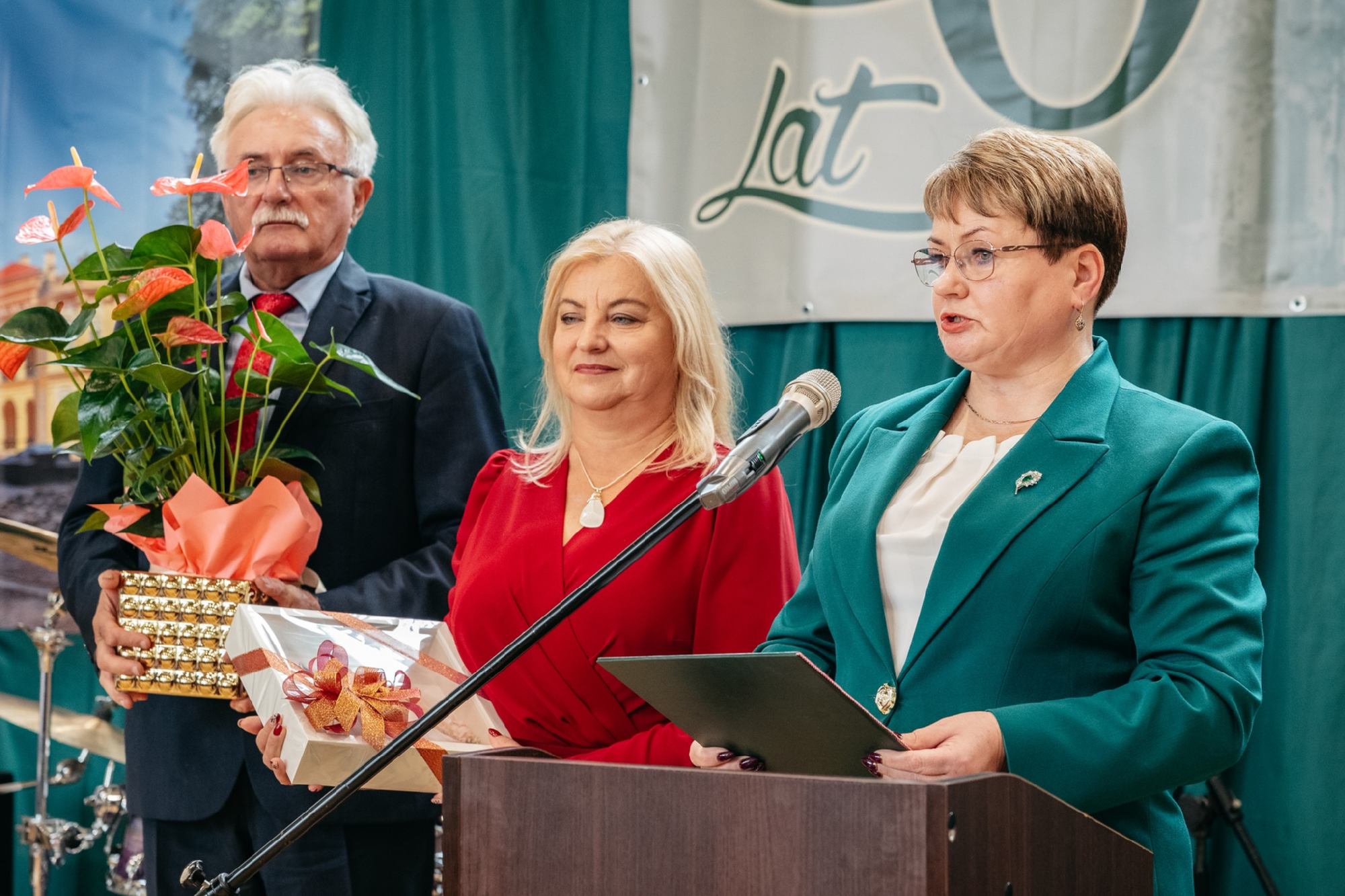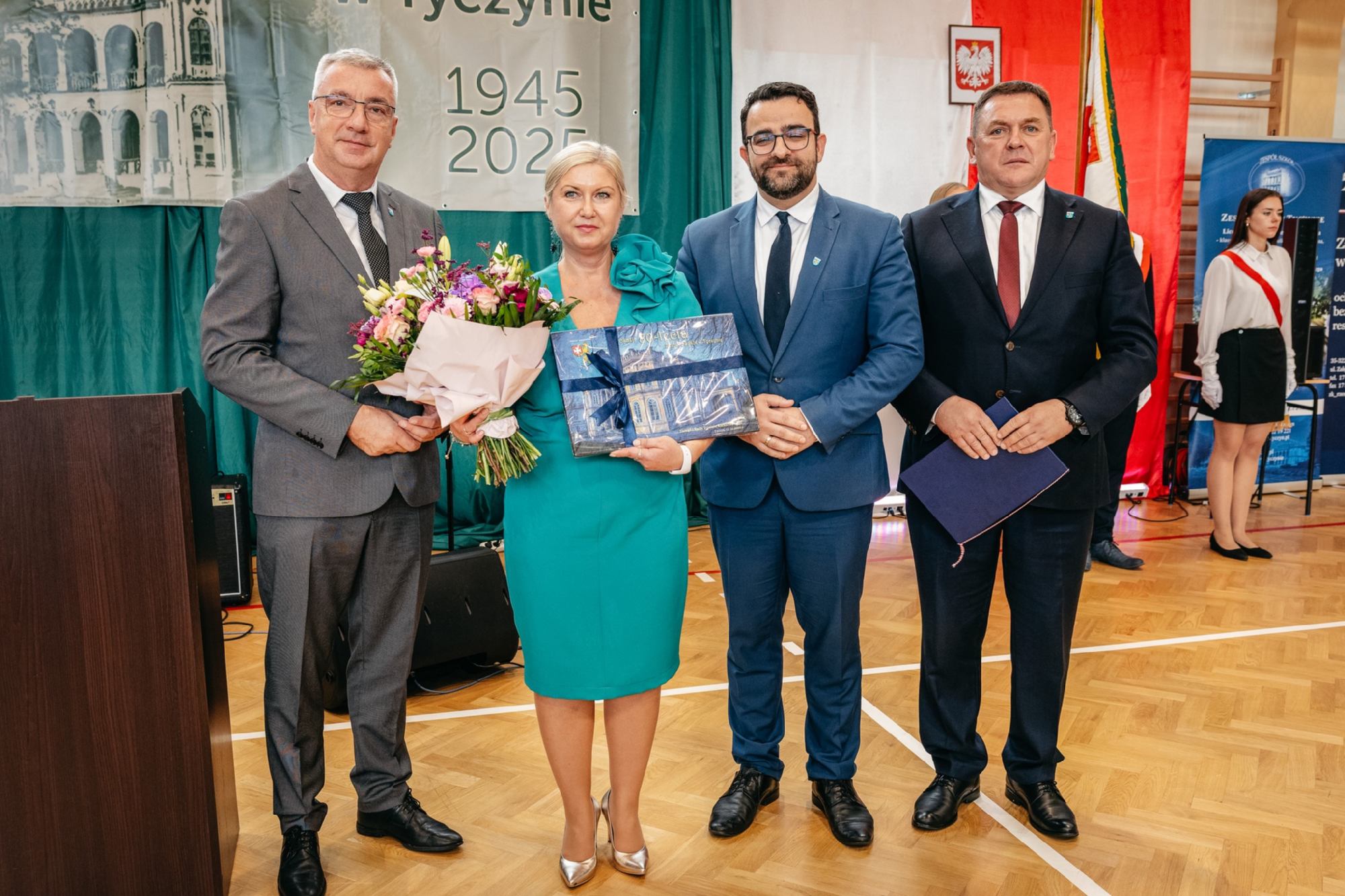 się uroczystość Jubileuszu 80-lecia Liceum Ogólnokształcąceg Pani Dyrektor Halina Cygan w imieniu Zespołu Szkół Zawodowych im. Kardynała Stefana Wyszyńskiego w Dynowie, a także w imieniu pozostałych dyrektorów szkół i placówek oświatowych prowadzonych przez Powiat Rzeszowski, wspólnie z Panią Elżbietą Klaczak–Łach - dyrektorem LO w Dynowie i Panem Januszem Jakubkiem – dyrektorem ZSTW w Trzcianie, przekazali na ręce Pani Dyrektor - Doroty Tarańskiej-Klęsk, list gratulacyjny, okolicznościowy prezent i kwiaty. W trakcie uroczystości odbył się przepiękny montaż słowno - muzyczny w wykonaniu uczniów, absolwentów szkoły, nauczycieli i zaproszonych gości. Gratulujemy pięknego jubileuszu i dziękujemy za zaproszenie.