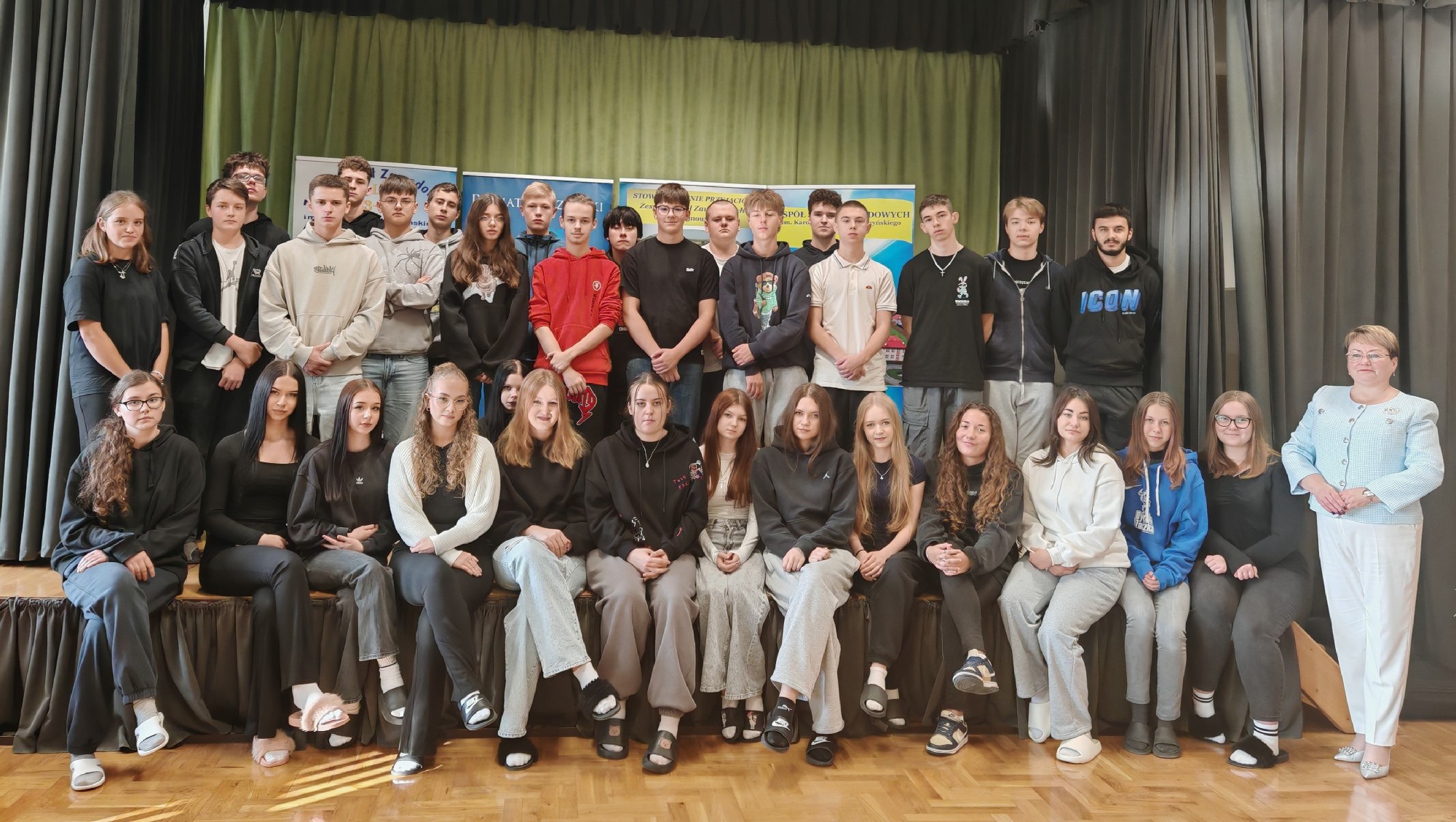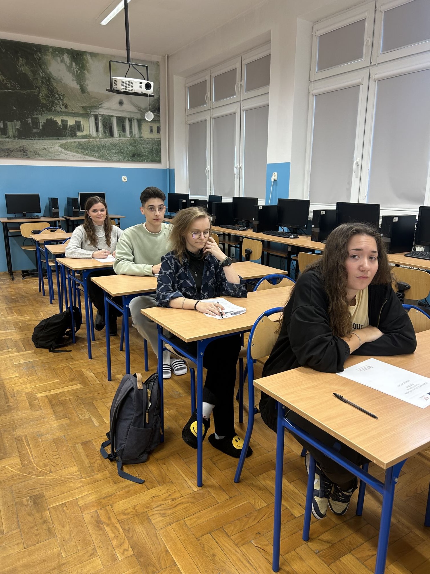 Zanim uczniowie przystąpili do napisania testu wiedzy, wykonano pamiątkowe zdjęcie wszystkich uczestników w obecności Pani Dyrektor Haliny Cygan, która uświetniła swoją obecnością rozpoczęcie konkursu. W teście wiedzy wzięło udział 33 uczniów. Tak duża liczba chętnych świadczy o zainteresowaniu polskiej młodzieży polską historią, kulturą i nauką. Szkolnym opiekuna konkursu była Pani Izabela Jach.